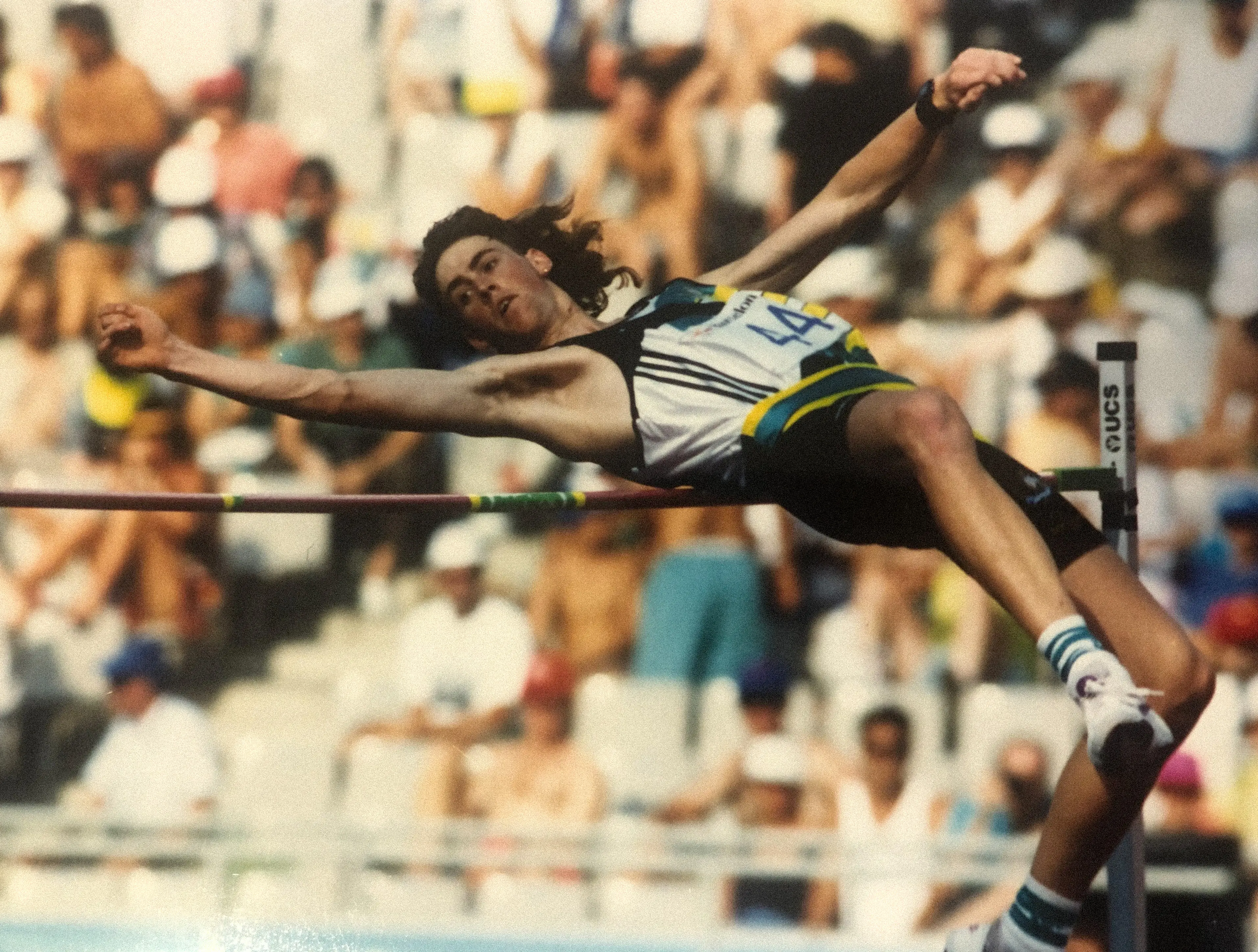 Image: Tim Forsyth jumps a new Australian High Jump Record