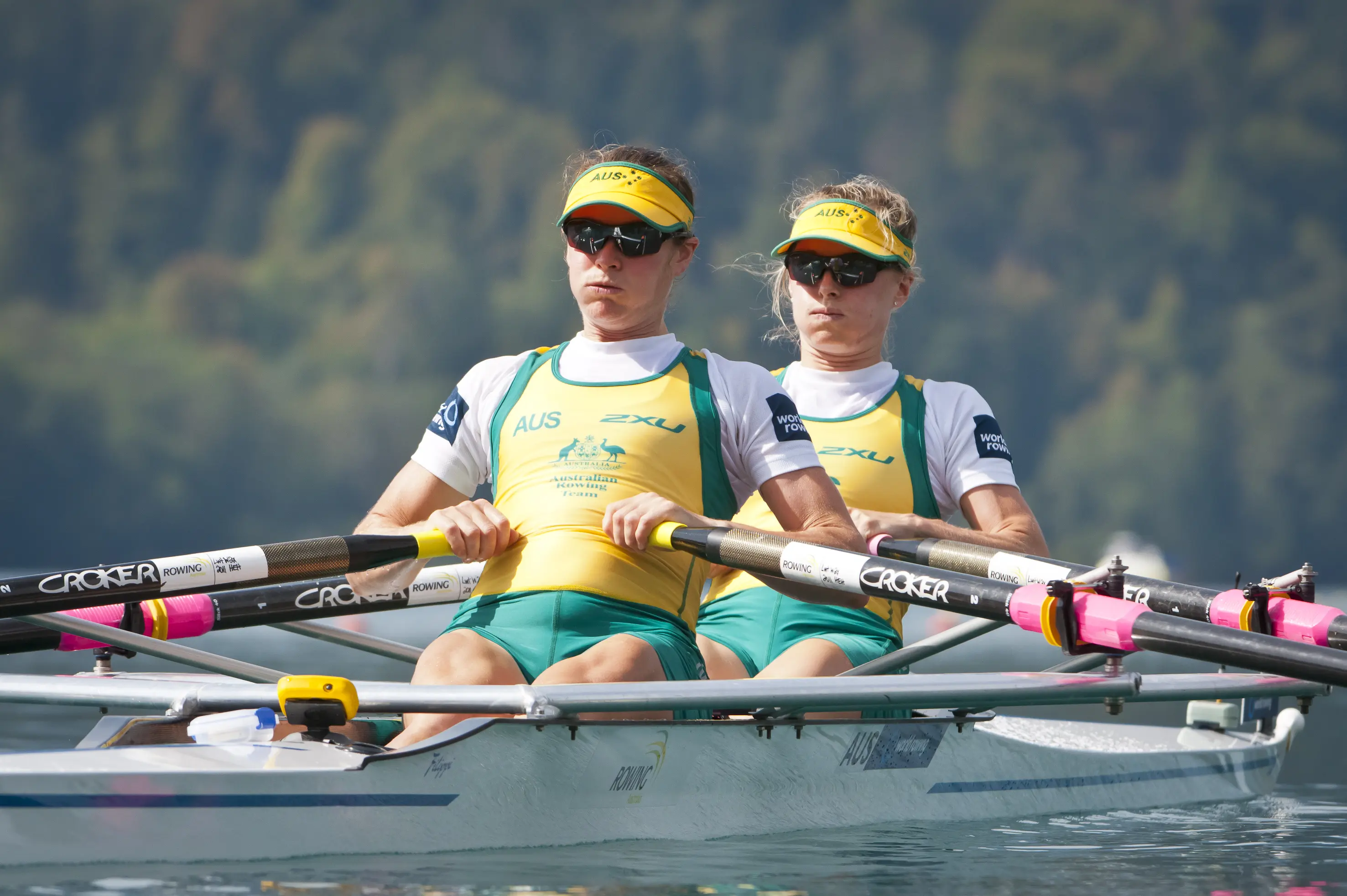 Image: Hannah Every-Hall (right) with teammate Alice McNamara in the lightweight women’s double sculls final race at the 2011 FISA Rowing World Championships on Lake Bled.
