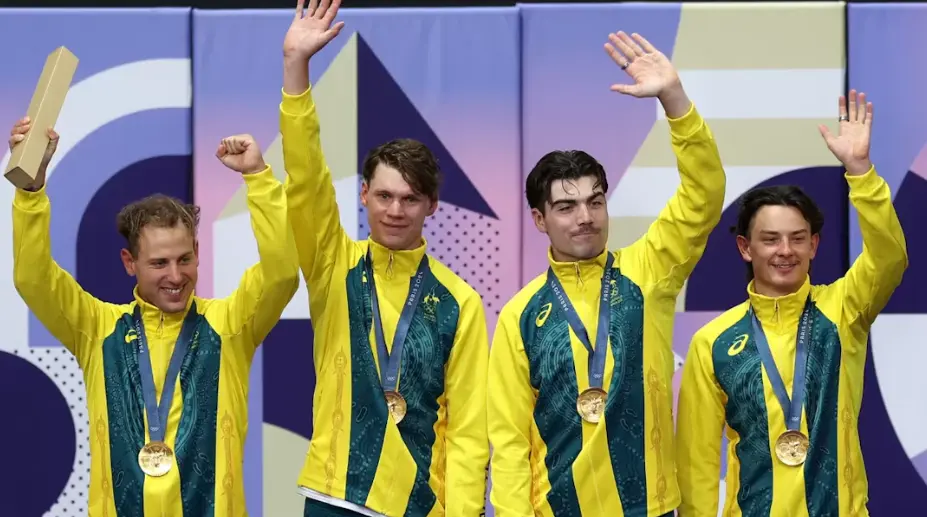 Sam Welsford, Kelland OBrien, Conor Leahy and Oliver Bleddyn emerged from a titanic battle with their arch rival at the Saint-Quentin-en-Yvelines National Velodrome with an historic gold medal.