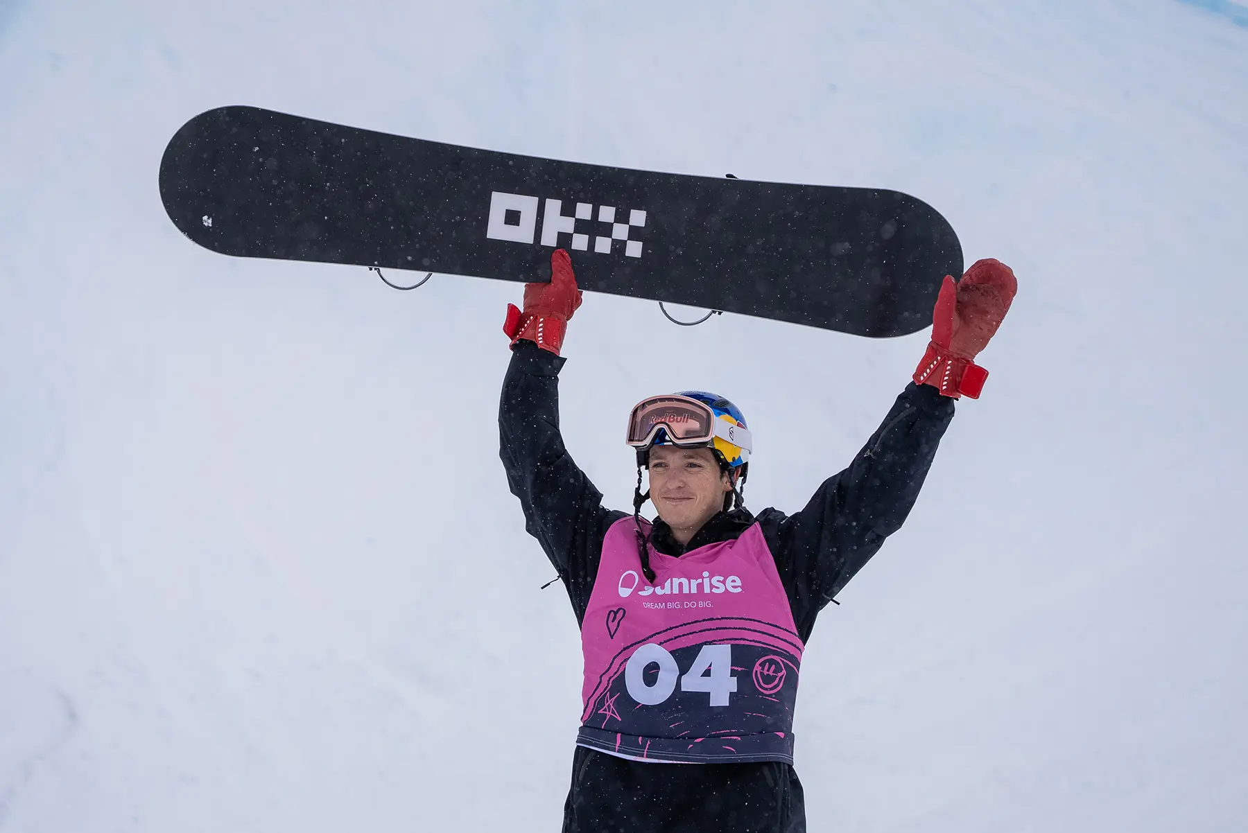In the best of two-run final in blizzard conditions, James opened with a score 89.50 for the highest scoring run of the round, leading Japanese riders Yuto Totsuka on 88.75 in second place and Ruka Hirano third on 88.50.