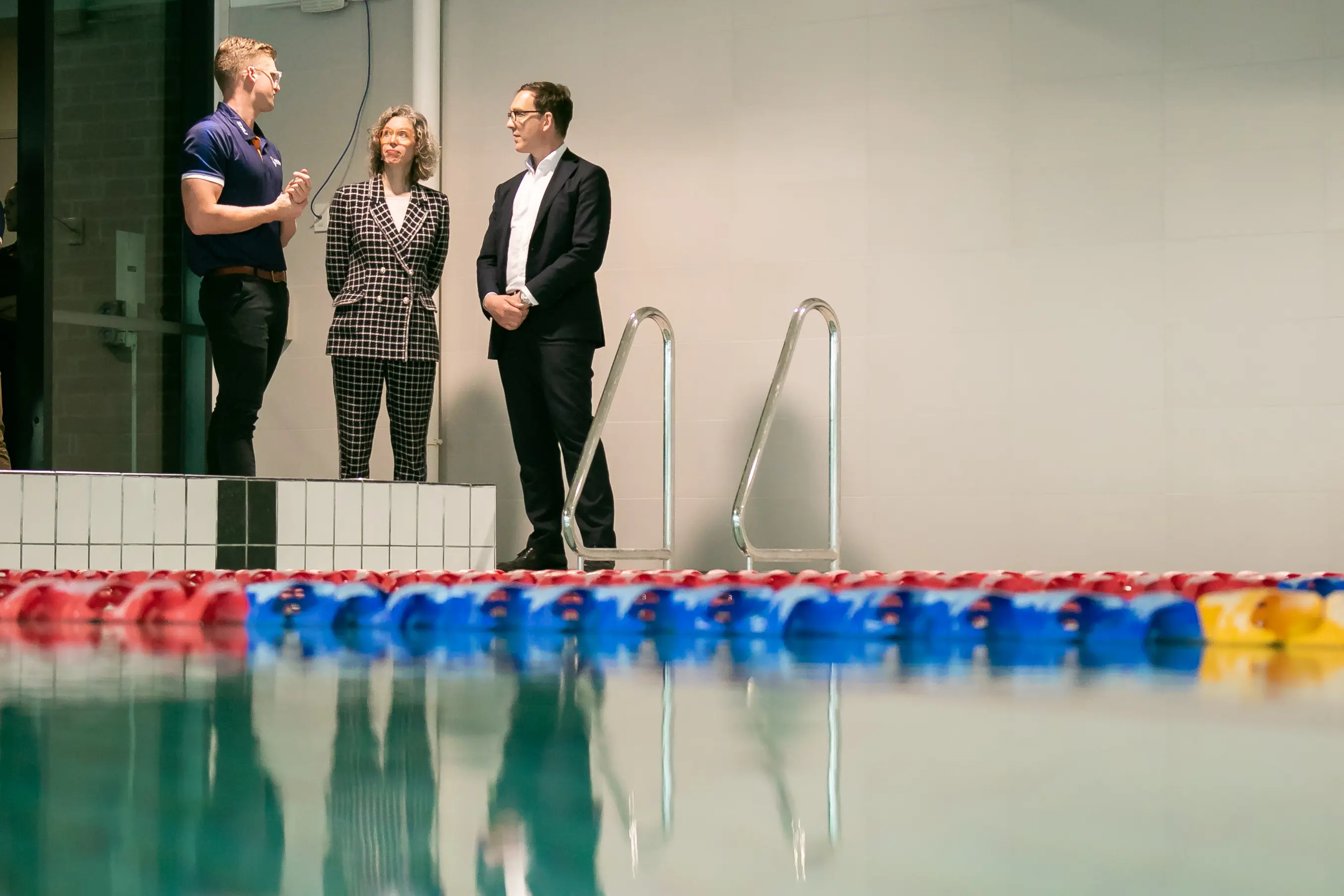 Minister for Sport Steve Dimopoulos viewed athletes from the sports of Badminton, Netball and Sailing train in the gym and did a brief tour of the ground floor.