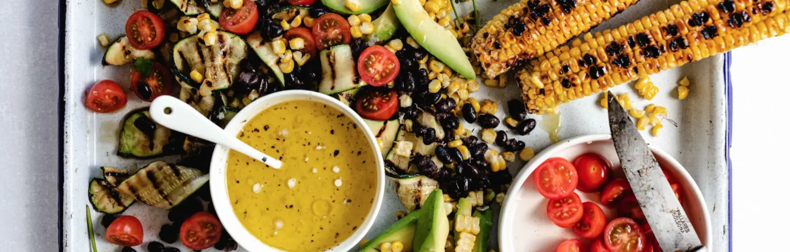To get you started, try this Chargrilled Corn, Zucchini and Tomato Salad with Yoghurt Lime Dressing provided by Eat Well Tasmania.