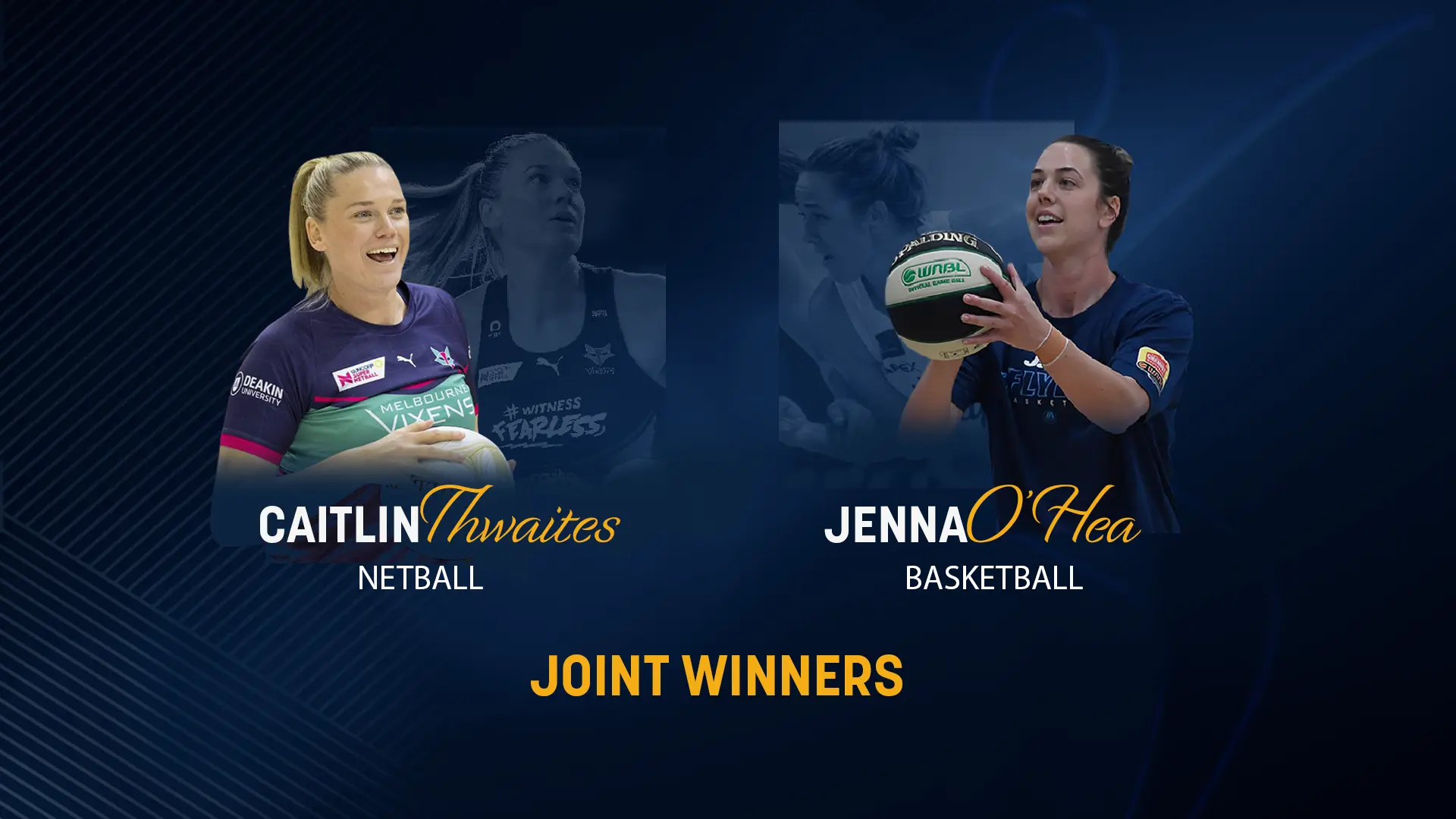 Tonight the Sarah Tait Spirit Award was presented for the first time ever to joint winners, Jenna OHea and Caitlin Thwaites at the 2020 Victorian Institute of Sport Awards.