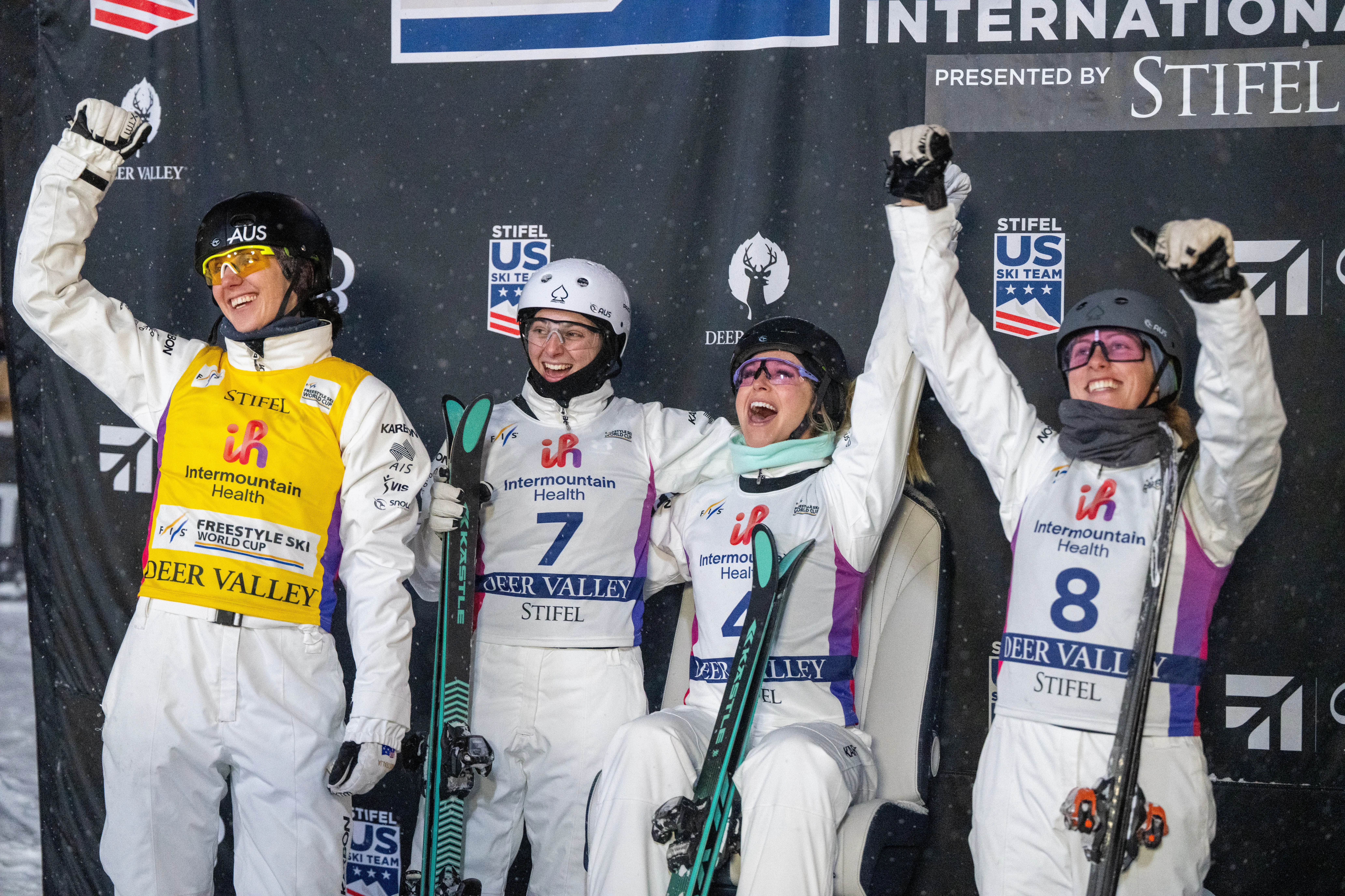 Photo: From left, Laura Peel, Airleigh Frigo, Danielle Scott and Abbey Willcox after the four-place clean sweep at the Deer Valley World Cup.