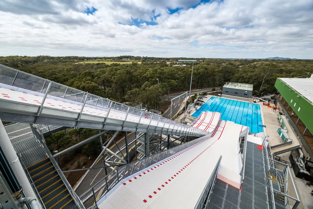 The structure, comprising 289 tonnes of steel, measures 37m equivalent to three Brisbane City Council buses stacked end to end. Elite winter athletes will now join cyclists, gymnasts, divers, swimmers, weightlifters and more at the Sleeman Centre.