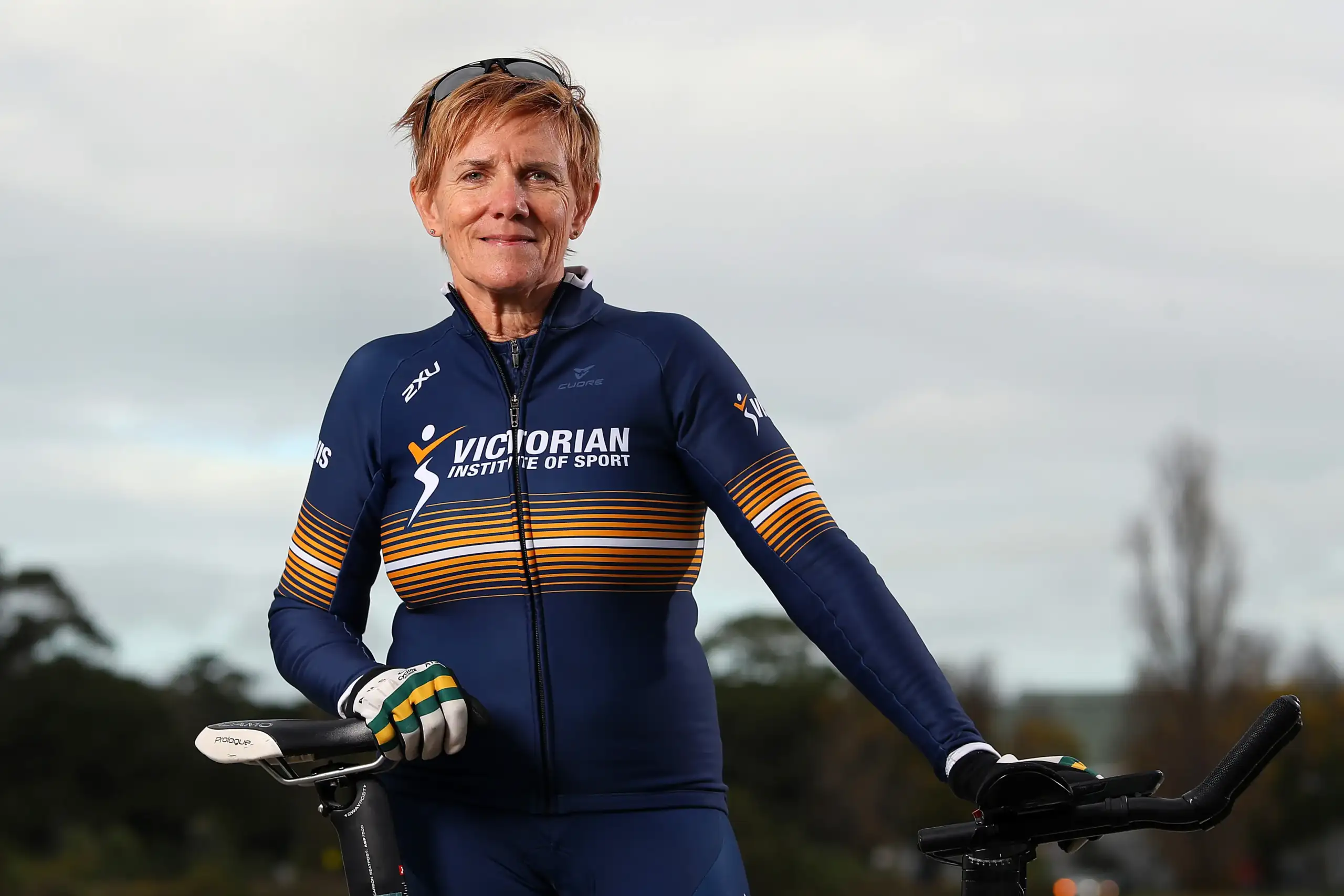 Image: Carol Cooke AM riding around Albert Park Lake. Credit: Getty Images / Kelly Defina